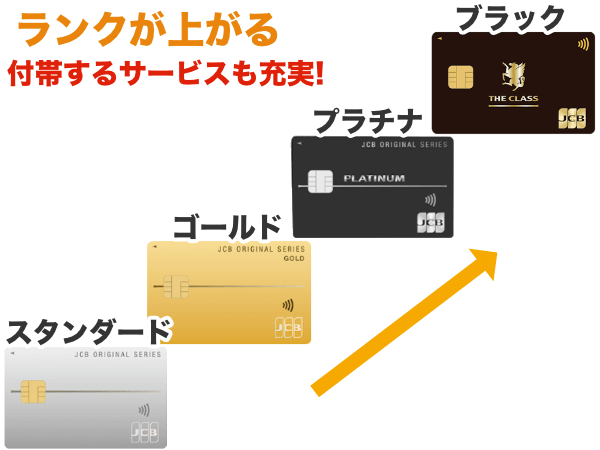 | ゴールド | ・JCB GOLD EXTAGE ・JCBゴールド ・JCBゴールド ザ・プレミア(招待制) |
